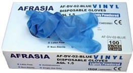 AF-DV-02: Blue vinyl glove, powdered, 4 g, 100 pcs/box, 10box/case, size: S