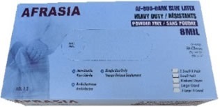 AF-103B: Blue rubber glove, flock lined, 18 mil, 13", 10 doz/case, size M - XL