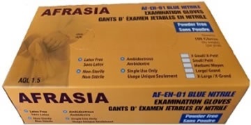 AF-EN-01: Blue nitrile, powder free, textured, 5 mil, 100 pcs/box, 10box/case, size: S-XL