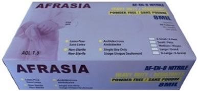 AF-EN-8: Heavy duty nitrile, powder free, 8 mil, textured, 50 pcs/box, 10box/case, size: M-XL